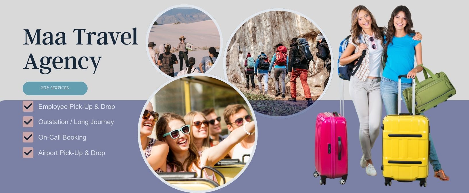 Maa Travels Agency is a reliable and professional travel service provider committed to offering safe, comfortable, and timely transportation solutions. We specialize in providing dependable cab services for individuals, corporate clients, and long-distance travelers.
